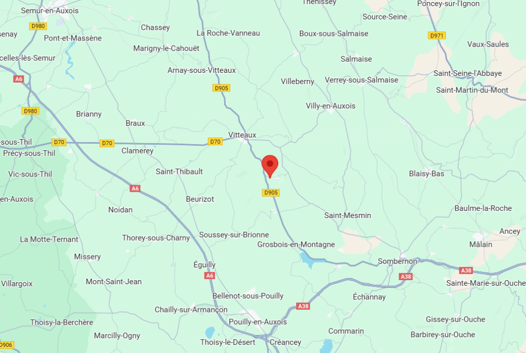 a 30m de Dijon, 5m de Vitteaux 10 m de Pouilly en Auxois .